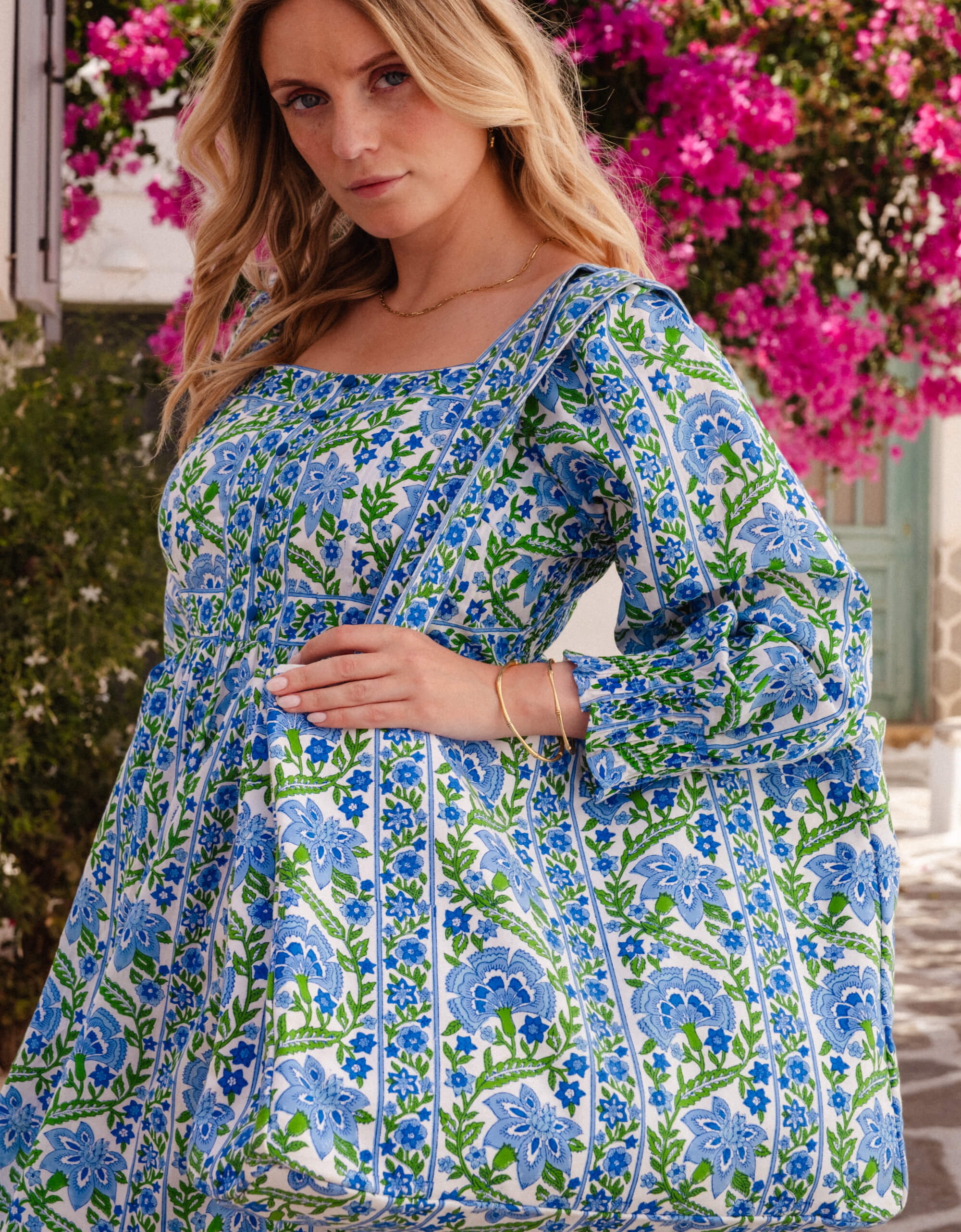 A playful twist on the everyday tote, our Sapphire Border Canvas Tote is block-printed by hand in rich shades of sapphire blue and emerald green. Crafted from sturdy organic cotton, it’s spacious, lightweight, and easy to carry from beach to city. We love the clever border print handles to finish. Style it with our matching Sapphire Border Angelina dress for an effortlessly coordinated look.
